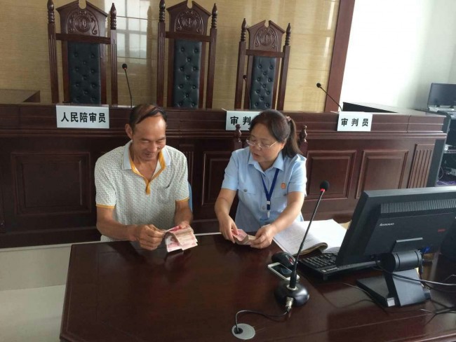 8月15日,在辉县市人民法院22号审判庭,当事人王某拿着两万元赔偿款给庭长李卫红深深鞠上一躬,历时三年的案件终于圆满结束。