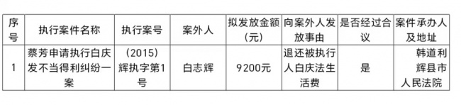 辉县市人民法院 关于向案外人白志辉发放执行案款的公示