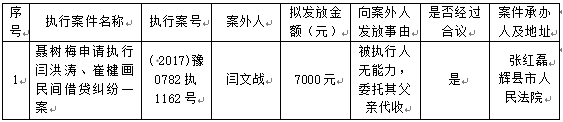 辉县市人民法院 关于向案外人闫文战发放执行案款的公示