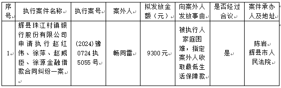 辉县市人民法院 关于向案外人畅同雷发放执行案款的公示