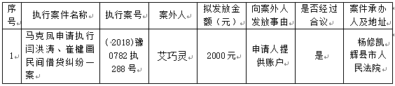 辉县市人民法院 关于向案外人艾巧灵发放执行案款的公示