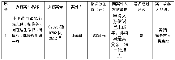 辉县市人民法院 关于向案外人孙海潮发放执行案款的公示