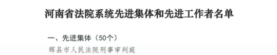 喜报 | 辉县法院刑事审判庭荣获“河南省法院系统先进集体”称号
