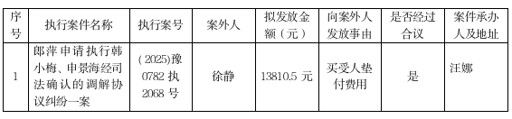 辉县市人民法院 关于向案外人徐静发放执行案款的公示