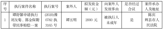 辉县市人民法院 关于向案外人谭五明发放执行案款的公示