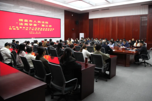 为进一步加强法院队伍建设,筑牢干警思想防线,10月29日下午,辉县人民法院举办“法苑学堂”第三讲,特邀中共辉县市委党校青年教师赵一帆以《严格落实中央八项规定及其实施细则精神—深入推进风腐同查同治》为题作专题授课。学堂由辉县法院党组成员、政治部主任王新恒主持,全体干警参加。