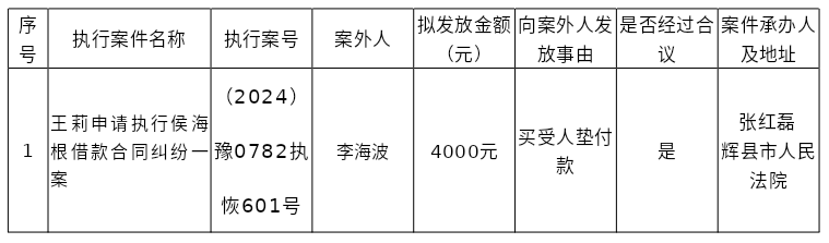辉县市人民法院关于向案外人李海波发放执行案款的公示