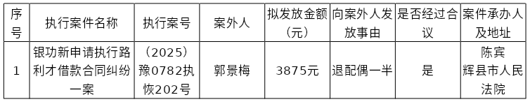 辉县市人民法院关于向案外人郭景梅发放执行案款的公示