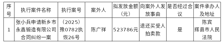 辉县市人民法院关于向案外人陈广祥发放执行案款的公示