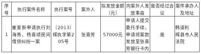 辉县市人民法院关于向案外人张喜芳发放执行案款的公示
