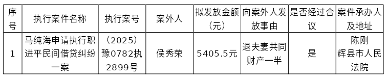辉县市人民法院关于向案外人侯秀荣发放执行案款的公示