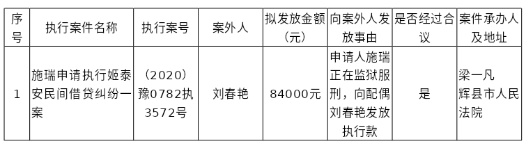 辉县市人民法院关于向案外人刘春艳发放执行案款的公示