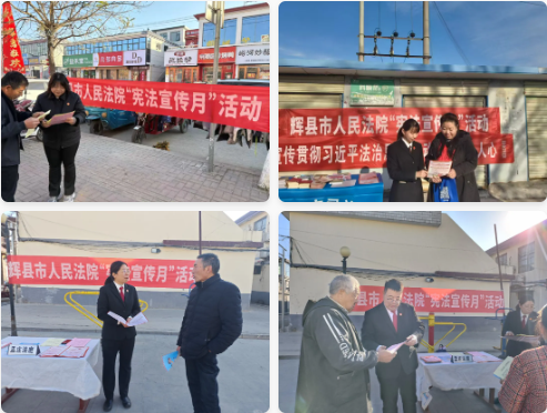 在宪法宣传月期间,辉县市人民法院紧密围绕“学习宣传贯彻习近平法治思想,推动宪法深入人心”主题,精心组织、周密部署,开展了一系列内容丰富、形式多样的宪法宣传活动,推动宪法精神深入基层、贴近群众、融入生活,取得了良好的社会效果。