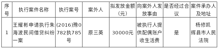 辉县市人民法院关于向案外人原三英发放执行案款的公示