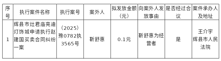辉县市人民法院关于向案外人靳舒惠发放执行案款的公示
