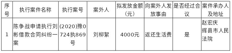 辉县市人民法院关于向案外人刘柳絮发放执行案款的公示
