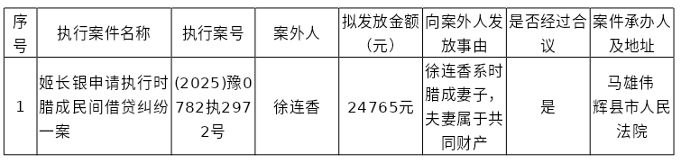 辉县市人民法院关于向案外人徐连香发放执行案款的公示
