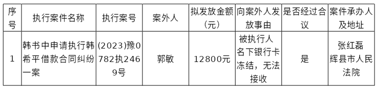 辉县市人民法院关于向案外人郭敏发放执行案款的公示
