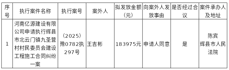 辉县市人民法院关于向案外人王吉彬发放执行案款的公示