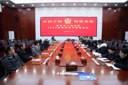 法润夕阳,情暖桑榆。2026年1月29日下午,辉县市人民法院为2025年度退休干警举行了荣退座谈会,以最诚挚的敬意与最热烈的祝福,送别为司法事业默默奉献的退休同志们。党组书记、代理院长张立东、荣退干警和在职干警代表齐聚一堂,共忆峥嵘岁月,共话法院发展,共叙深厚情谊。座谈会由院党组成员、政治部主任王新恒主持。