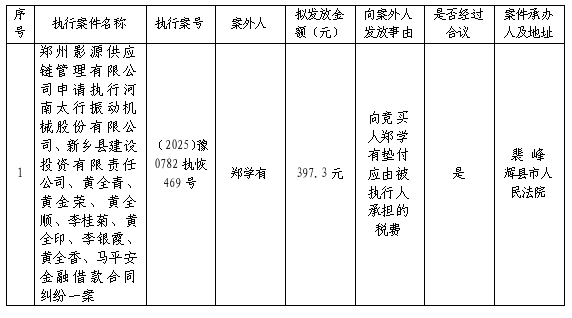 辉县市人民法院关于向案外人郑学有发放执行案款的公示