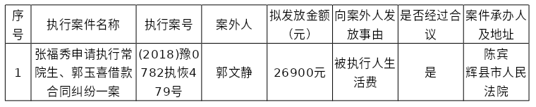 辉县市人民法院关于向案外人郭文静发放执行案款的公示