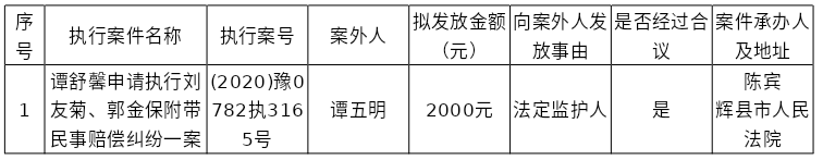 辉县市人民法院关于向案外人谭五明发放执行案款的公示