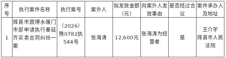 辉县市人民法院关于向案外人张海涛发放执行案款的公示