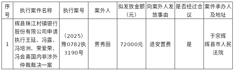 辉县市人民法院关于向案外人贾秀丽发放执行案款的公示