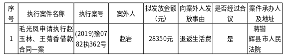 辉县市人民法院关于向案外人赵岩发放执行案款的公示