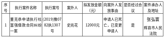 辉县市人民法院关于向案外人史兆花发放执行案款的公示